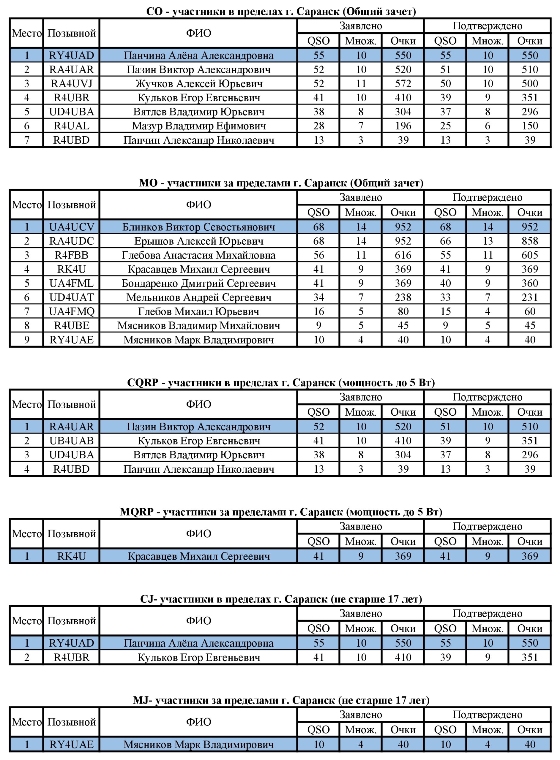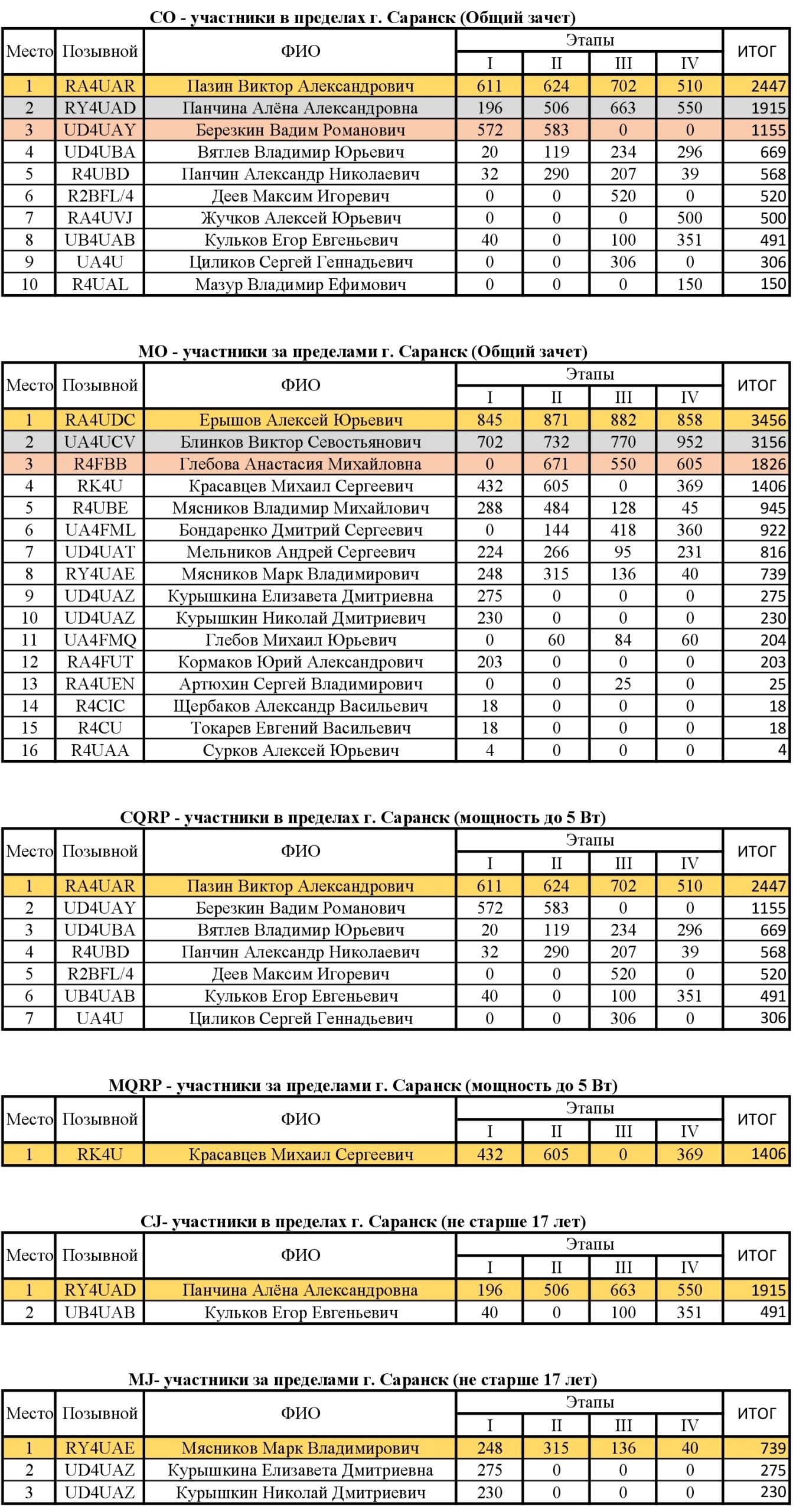 Предварительные результаты Кубка города Саранска по радиосвязи на УКВ 2025:
