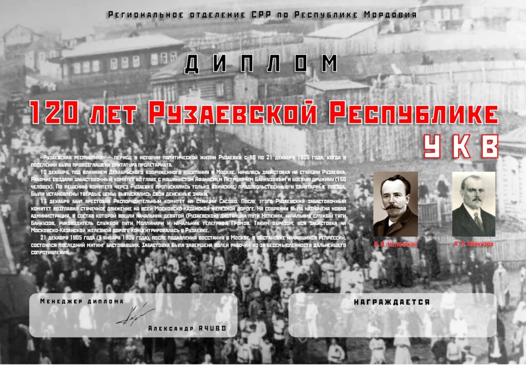 Диплом “120 лет Рузаевской Республике УКВ”