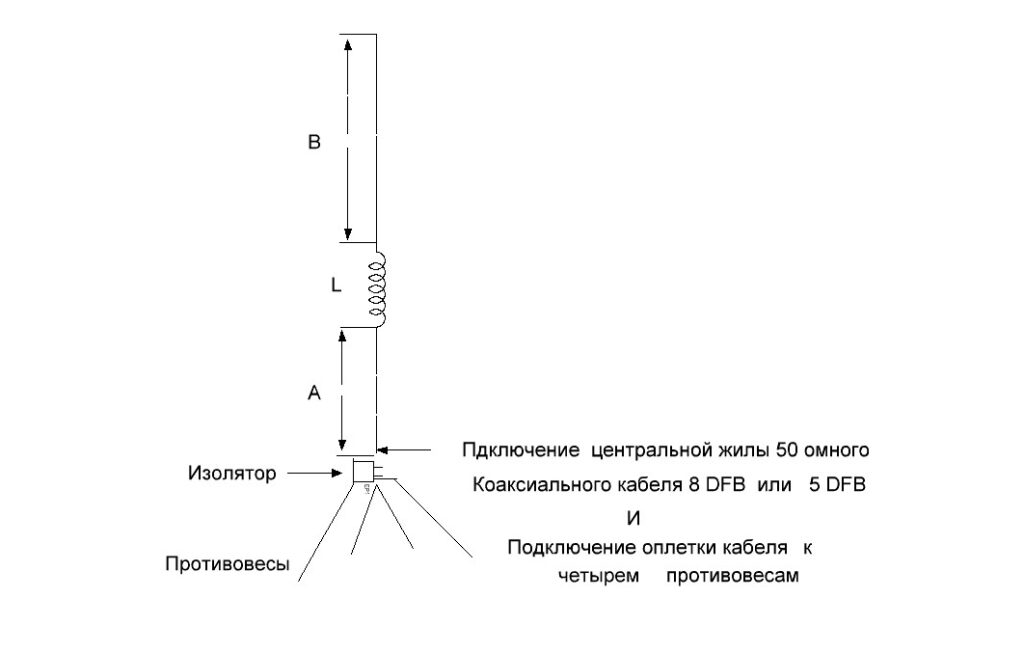 Верхний излучатель ( В ) длинной 5\8 лямбда и длинной от 129 до 133 мм. желательно при настройке данную длину откорректировать.